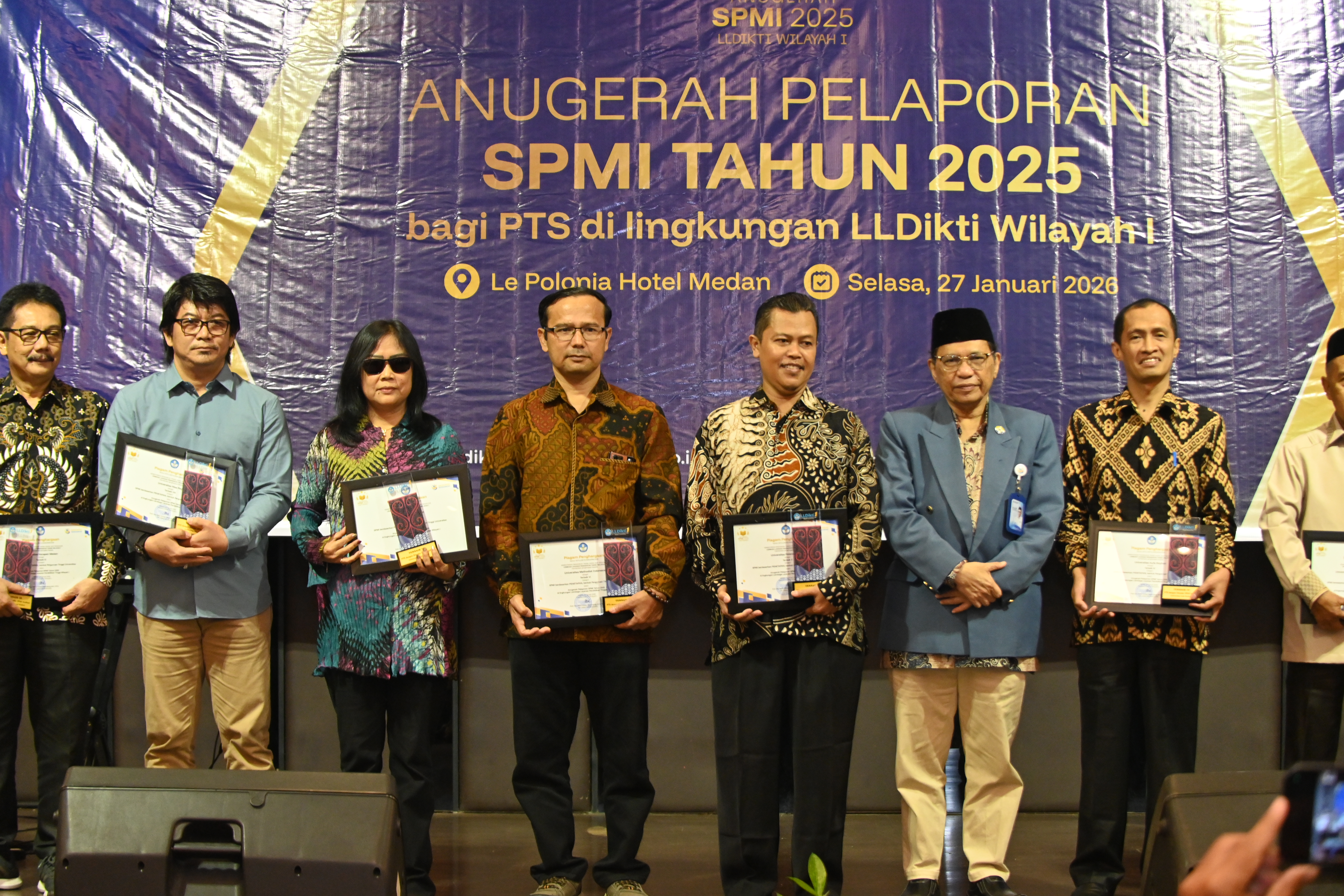 Medan, 27 Januari 2026 – Dalam rangka memberikan penghargaan atas dedikasi dan prestasi nyata Perguruan Tinggi Swasta (PTS) dalam penjaminan mutu pendidikan, LLDIKTI Wilayah I Sumatera Utara menggelar malam penghargaan bergengsi: Anugerah Pelaporan SPMI LLDIKTI Wilayah I Tahun 2025. Acara yang berlangsung megah di Le Polonia Hotel Medan ini menjadi bukti komitmen bersama dalam mendorong kesempurnaan Sistem Penjaminan Mutu Internal (SPMI) di setiap institusi. Acara tersebut dihadiri oleh ketua Lembaga Penjaminan Mutu (LPM) Helmi Kurniawan, S.T., M.Kom dan Staf LPM Faisal Amir Harahap, M.Kom.
